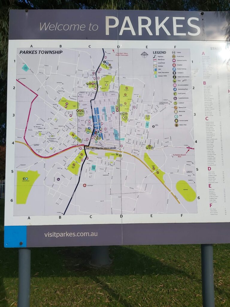 Next morning we were up and packed early so we could get the windscreen chip repaired. The repairer fit us in quickly and got to work, so we took a stroll around town in the daylight to see some of the city sights. Parkes is an easy city to navigate, and is probably best known for “The Dish”a giant radio telescope that played a part in the 1969 Moon landings, and Elvis. Yes he of the pelvis and the sideburns, thank you very much. Our time in Parkes was short, and there was a lot we did not see, but if you want to know more look at the Visit NSW website.